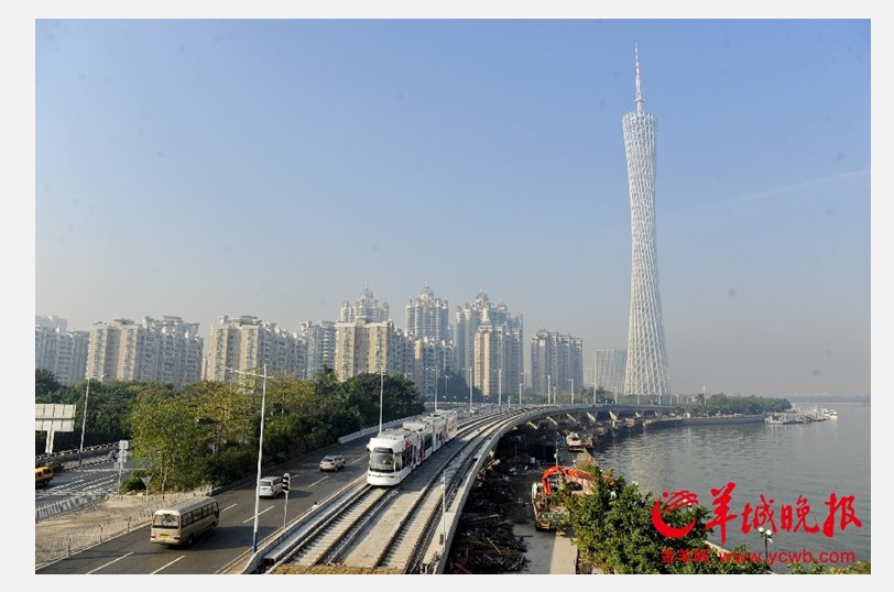 广州有轨电车今早开通首列列车