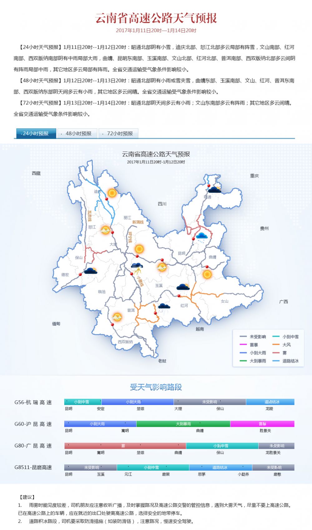 交通气象:为交通管理部门、运输公司和司机等服务对象提供各类交通气象影响服务产品。