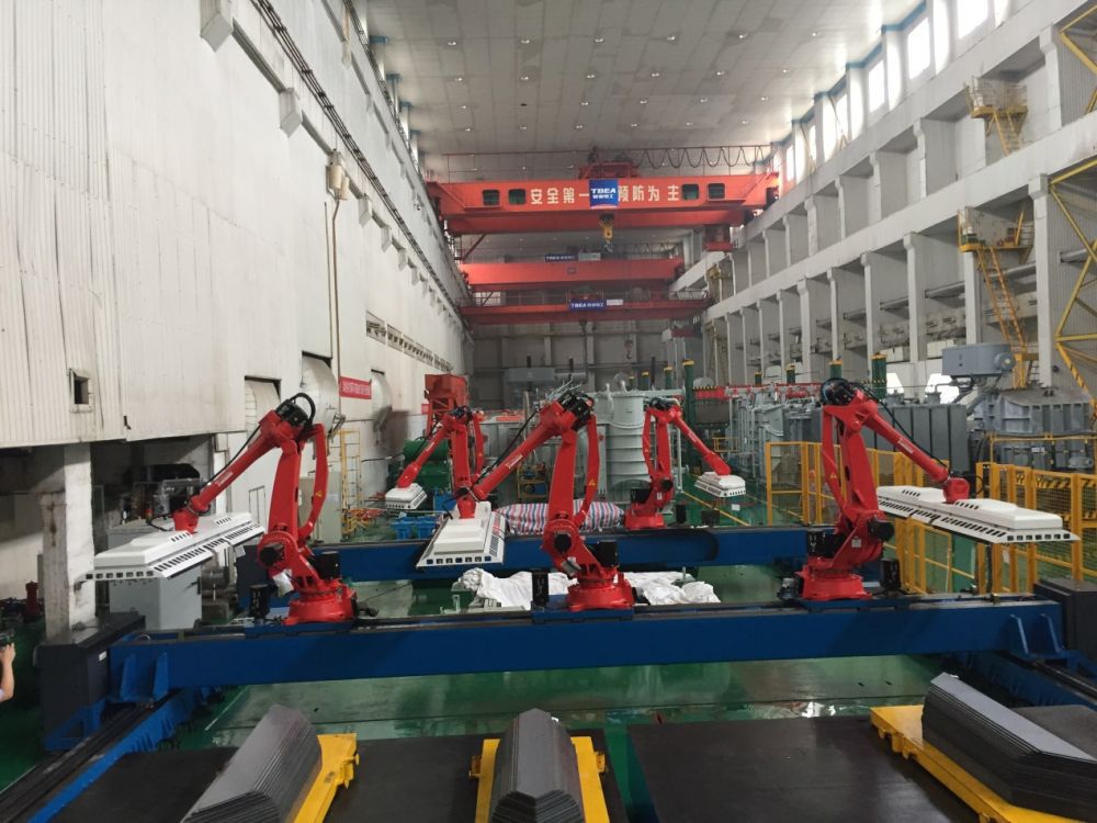 叠片机器人工作站,可用于110-500千伏、容量12-40万千伏安中大型变压器铁芯全自动叠片。该工作站突破了多项关键技术,具有自动化程度高、叠片精度高、柔性程度高、人机交互界面便利的优点。该项目的研制成功,填补了国内外中大规格变压器铁芯自动叠片的技术空白。